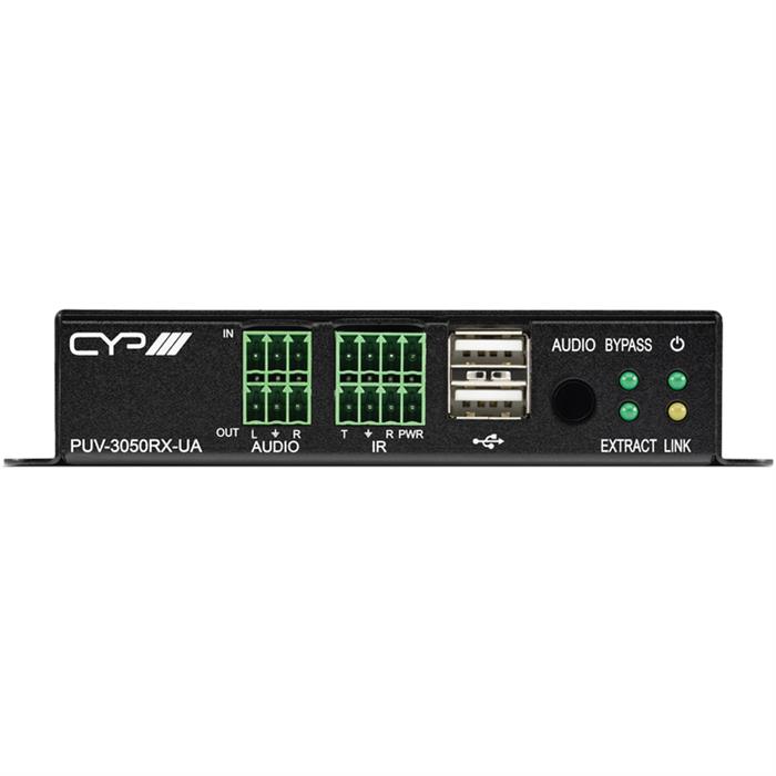 Übertragung von Audio, Video bis zu 4K UHD+ (18Gbps, 4K@60Hz 4:4:4, 8-bit) mit HDCP 2.2, HDR, PoH, RS232, USB, Analog Audio und einem bidirektionalen Steuersignal (IR) über ein Cat6a/7 Kabel (max. 40 m).