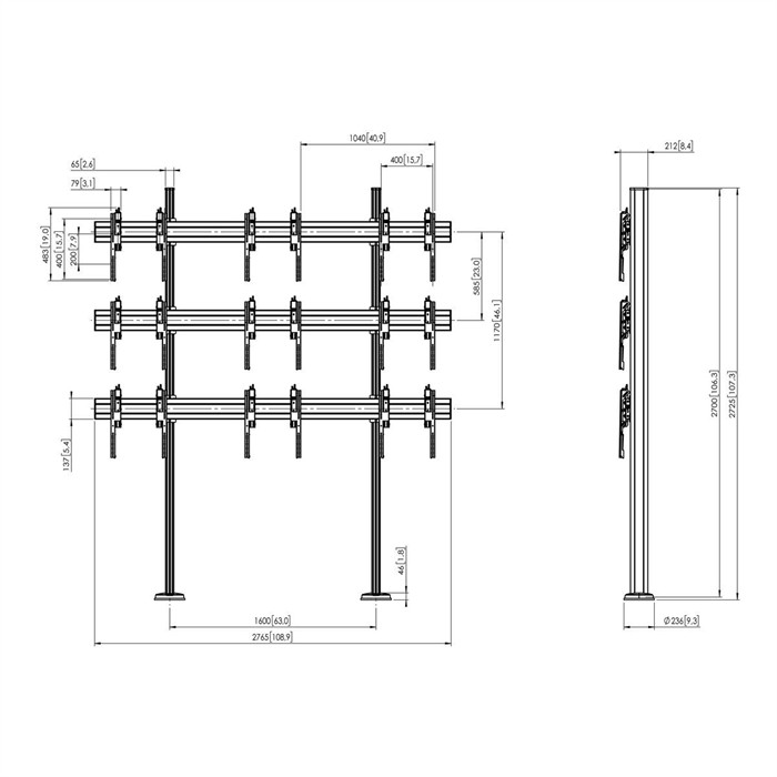 FMVW3347 Videowall Bodenständer, Bodenmontage 3x3