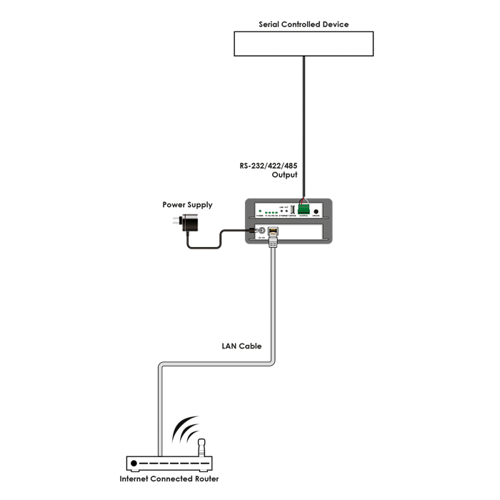 und dient zur Steuerung über IP eines einzelnen seriellen Geräts (RS-232/422/485).