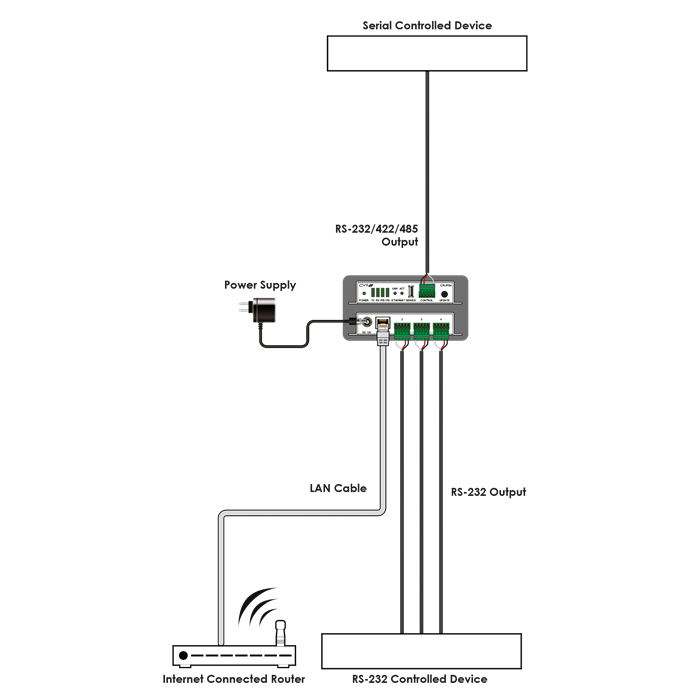 Das CR-IPS4 ist ein IP zu Serial Konverter mit 4 bidirektionalen seriellen Ports. An jedem der 4 seriellen Ports wird RS232, so wie an Port 1 zusätzlich RS-422 oder RS-485 unterstützt.
