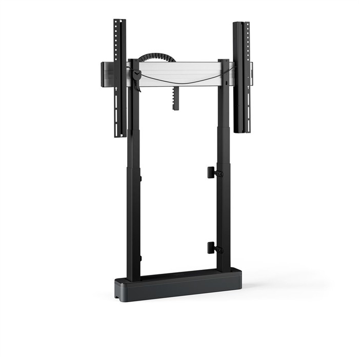 Die Boden-Wand Lösung mit innovativem motorisiertem Display-Liftsystem DirectContol. Senken oder heben Sie das größte Display einfach durch Berühren mit der Hand. 980-mm-Hubbereich, 80 mm/s, für Displays bis 98", max. 140 kg, TÜV-/CE-geprüft, schwarz