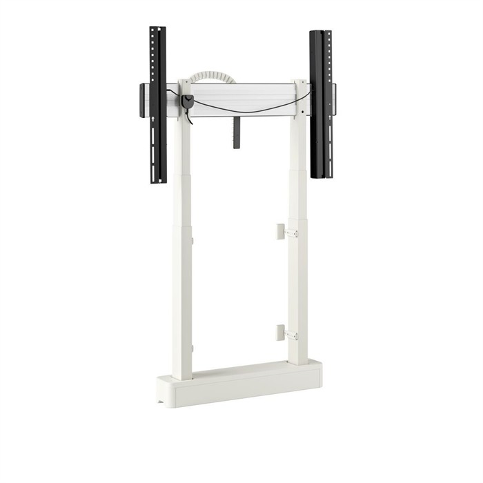 Die Boden-Wand Lösung mit innovativem motorisiertem Display-Liftsystem DirectContol. Senken oder heben Sie das größte Display einfach durch Berühren mit der Hand. 980-mm-Hubbereich, 80 mm/s, für Displays bis 98", max. 140 kg, TÜV-/CE-geprüft, weiss