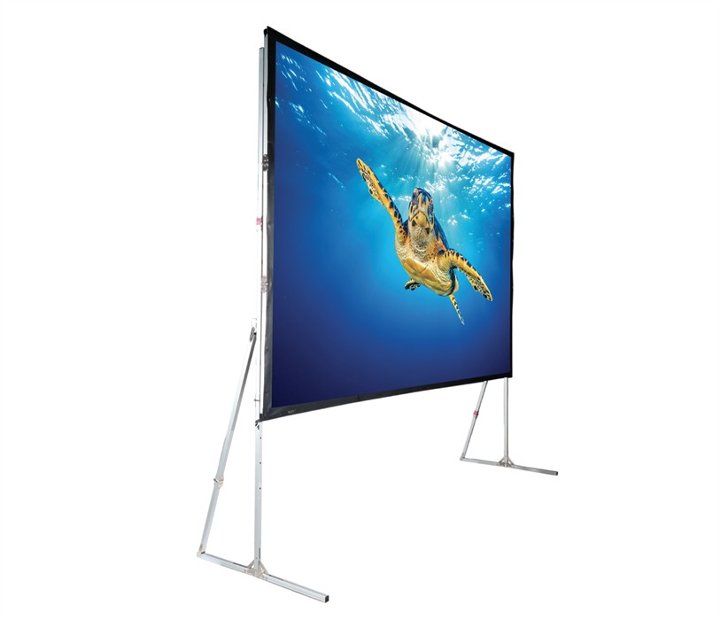 Écran sur cadre avec flightcase et 2 toiles (pro avant / pro arrière), pieds de support