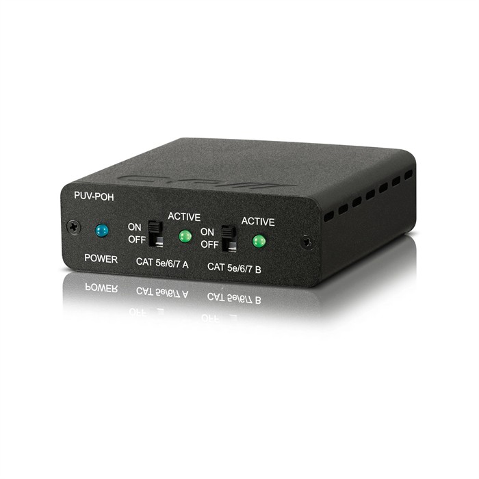 Injecteur HDBaseT PoH (48 V PoE), pour alimenter les appareils HDbaseT tels que les plaques murales CYP ou la série PUV-2600 de CYP. Il est possible d'alimenter l'émetteur et le récepteur via le PUV-POH.