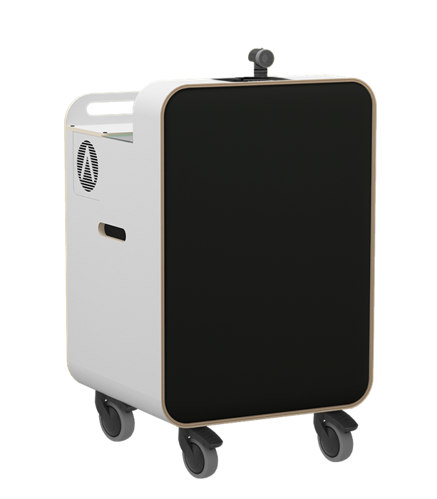 Artome S2 est un meuble mobile qui affiche une image jusqu'à 120 pouces avec un projecteur laser Epson. Il devient le centre des présentations locales et des vidéoconférences simples.