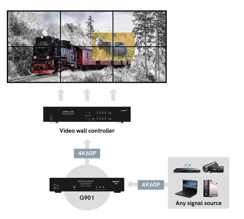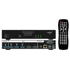 Le G901 accepte des signaux jusqu’à 4096×2160/60, 7680×2160/30 ou même 7680×4320/30 en DisplayPort. L’unité peut générer une sortie jusqu’à 4096×2267/60 ou 7680×1234/60, ce qui le rend idéal pour les LED walls, projecteurs haute luminosité et systèmes panoramiques. Le traitement 10 bits, la détection automatique HDR et l’échantillonnage 4:4:4 assurent une fidélité d’image maximale.