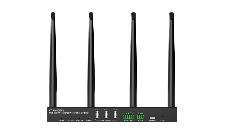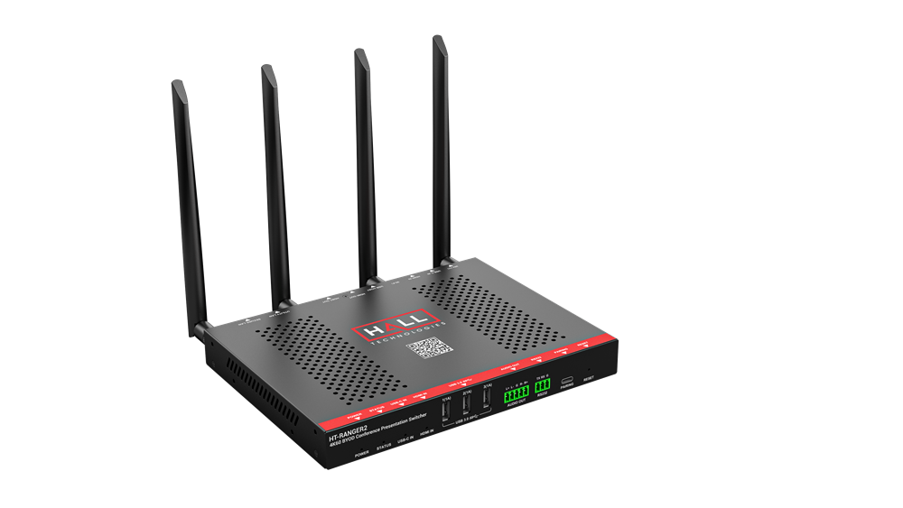 Le HT-RANGER2 de Hall Technologies est un mélangeur de présentation BYOD qui offre une connectivité fluide et des performances exceptionnelles pour les salles de réunion modernes, les salles de classe et les environnements de travail collaboratifs. Grâce à son module Wi-Fi intégré, le HT-RANGER2 prend en charge, outre les connexions filaires via des ports HDMI et USB-C, diverses options de présentation sans fil telles qu'AirPlay, Miracast, Smart View et HT-VOYAGER. Cette flexibilité permet aux utilisateurs d'afficher le contenu de leurs appareils en mode plein écran ou double affichage sur un écran connecté. L'appareil prend en charge des résolutions d'entrée HDMI allant jusqu'à 4K@30Hz 4:4:4 et des sorties jusqu'à 4K@60Hz 4:4:4 (4:2:0 pour la sortie HDBT). Grâce à la commutation automatique du signal, au CEC, à un écran d'aide détaillé et à un affichage à l'écran (OSD) intuitif, le HT-RANGER2 optimise les présentations et garantit une expérience utilisateur intuitive.