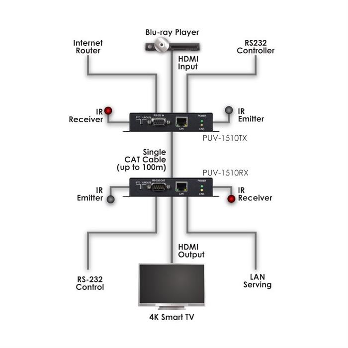 Transmissione di segnali audio, video fino a 4K con HDCP 2.2, PoH