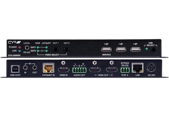 Trasmette audio, video fino a 4K con HDCP 2.2, PoH, Ethernet, RS232, USB 2.0 bidirezionale e un segnale di controllo bidirezionale (IR) su un cavo Cat5e (max. 100 m).