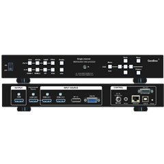 Con ingressi HDMI, DisplayPort e VGA, uscita HDMI e loop-out, il M801Ex si integra facilmente in installazioni professionali e sistemi multi-device. Il processing a 10 bit, il de-interlacciamento adattivo e la gestione EDID garantiscono stabilità e affidabilità 24/7.